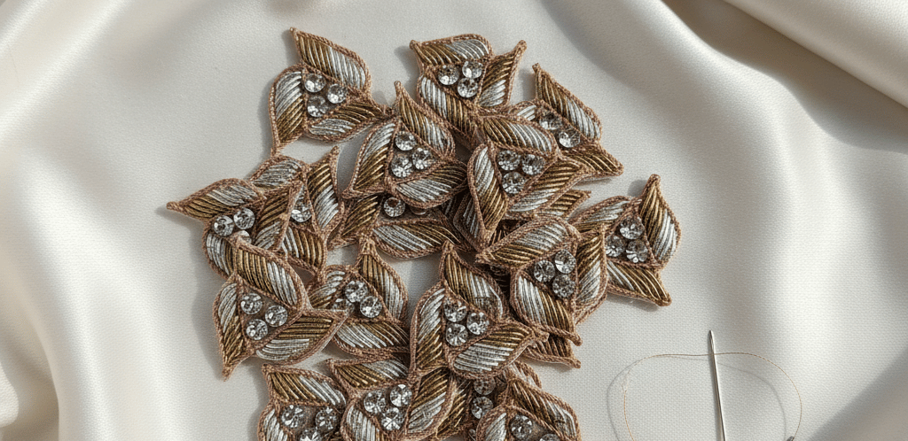 Zardosi patches and hand-embroidered applique motifs are an essential part of traditional and modern Indian fashion design. These embellishments are crafted using zari, dabka, pearls, beads and fine stitching techniques. They add elegance to bridal lehengas, sarees, blouses, gowns, dupattas and even luxury home décor. In this blog, you will explore how to use, attach and style these stunning handcrafted elements in your designs.
